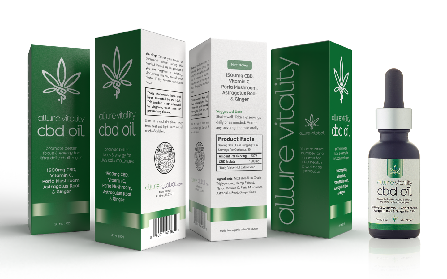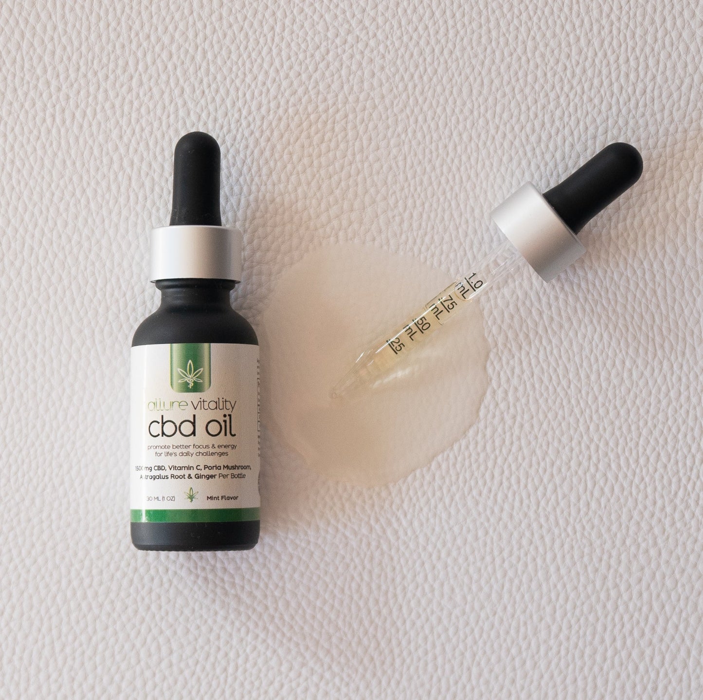 Allure Vitality CBD Oil- 1500 mg CBD Vitamin C Astragalus Root, Ginger, Poria Mushroom30ml bottle
