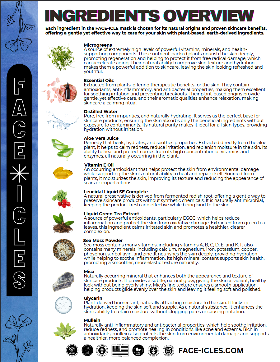 Depending on the microgreen and oil blend, your skin receives targeted benefits like detoxification, rejuvenation, or calming, leaving it healthy, balanced, and radiant.