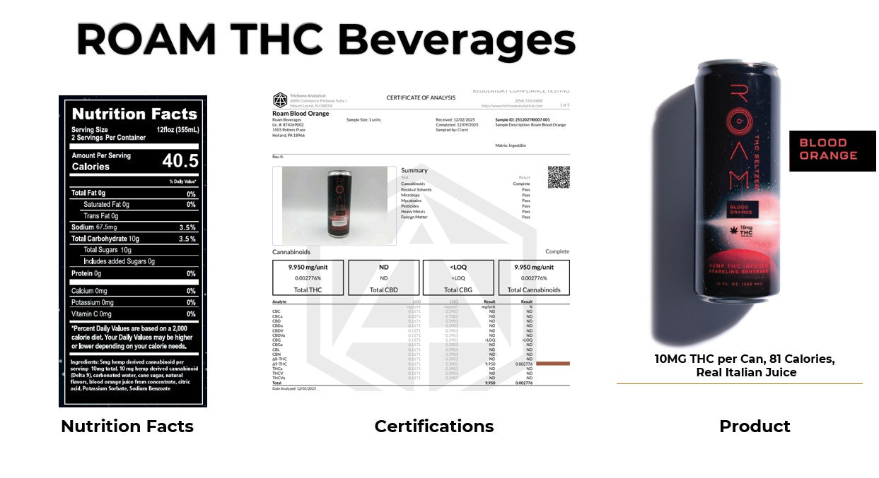 ROAM THC Drinks Blood Orange 10mg 4pk Bundle- 3 4-Packs