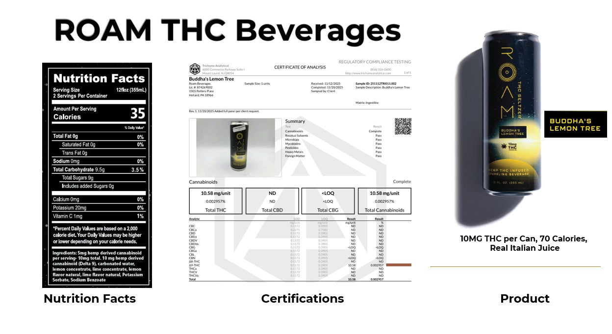 ROAM THC Drinks Buddha's Lemon Tree 10mg 4pk Bundle- 3 4-Packs